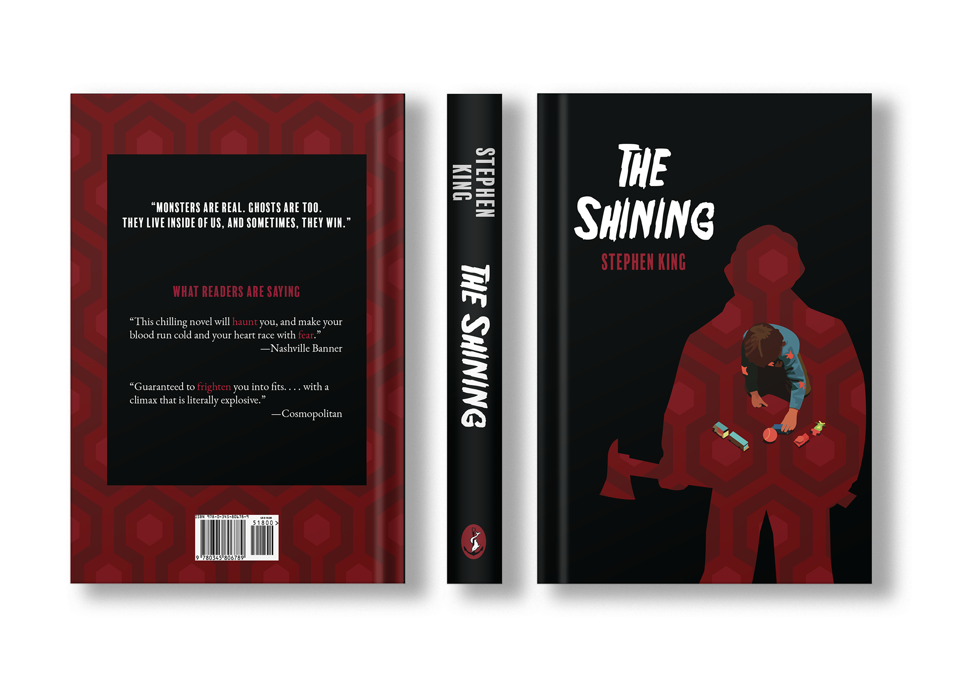 When redesigning Stephen Kings’ The Shining, I wanted to pay homage to the well known and loved movie with Jack Nicholson, Shelley Duval and Danny Lloyd.